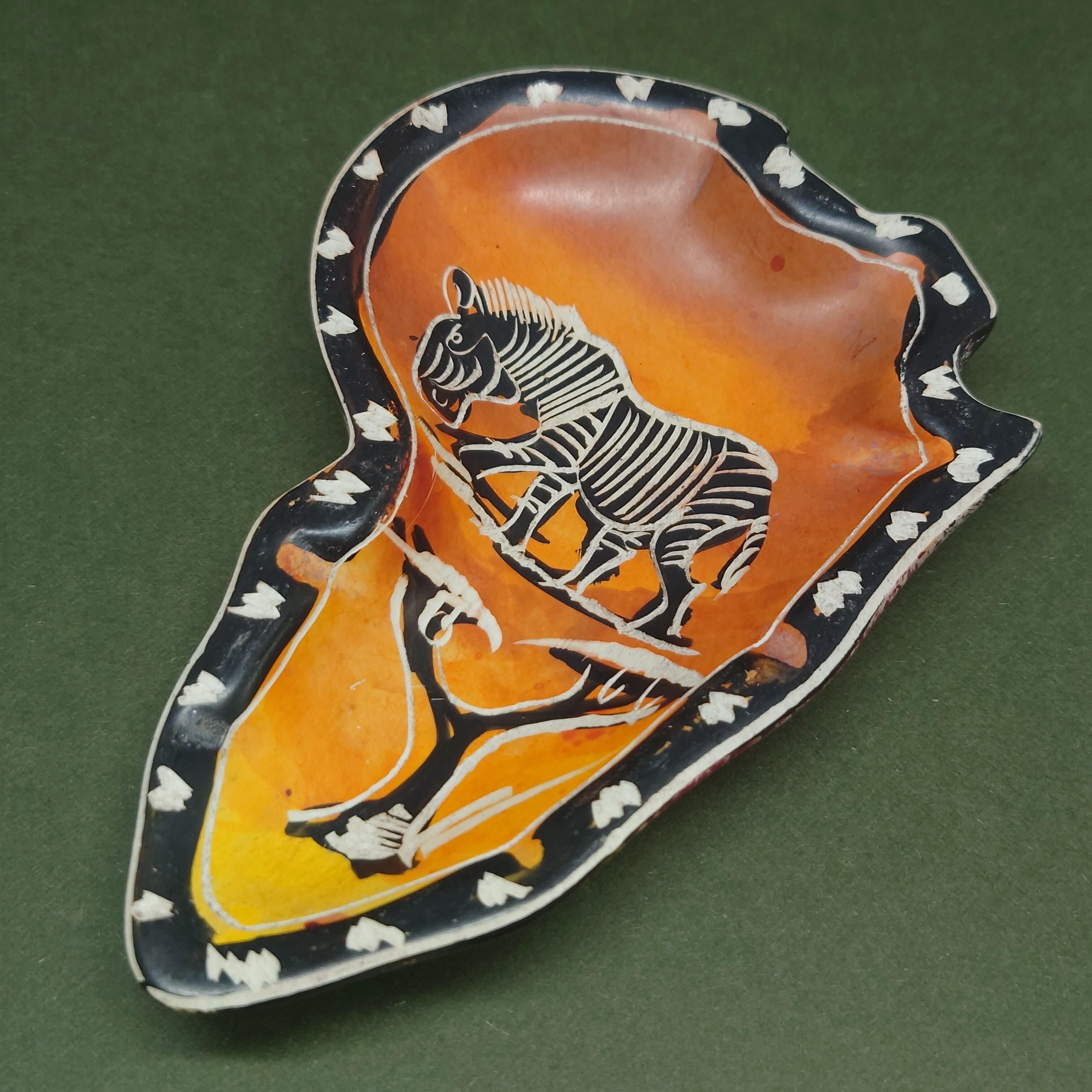 アフリカ大陸型/ゼブラ 天然石ソープストーン カーヴィング アフリカン インテリア ディッシュ