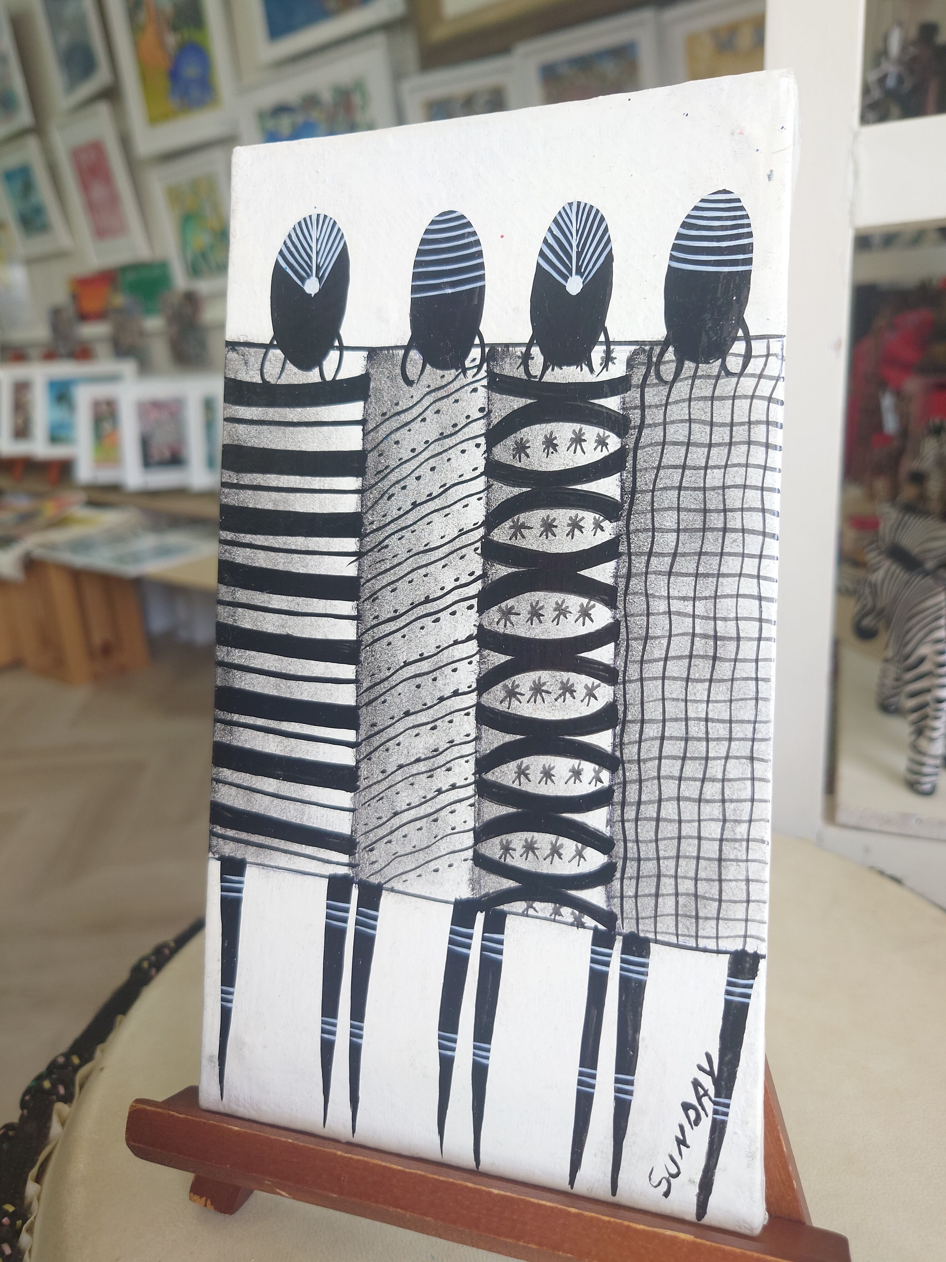 【木版】 SUNDAY 長方形サイズ ティンガティンガは、アフリカの伝統的なティンガティンガスタイルで描かれた作品です。色鮮やかでユニークなデザインが特徴で、カジュアルなインテリアアクセントとして楽しむことができます。手軽に飾れるハガキサイズなので、様々な場所に気軽に置いてお楽しみください!
