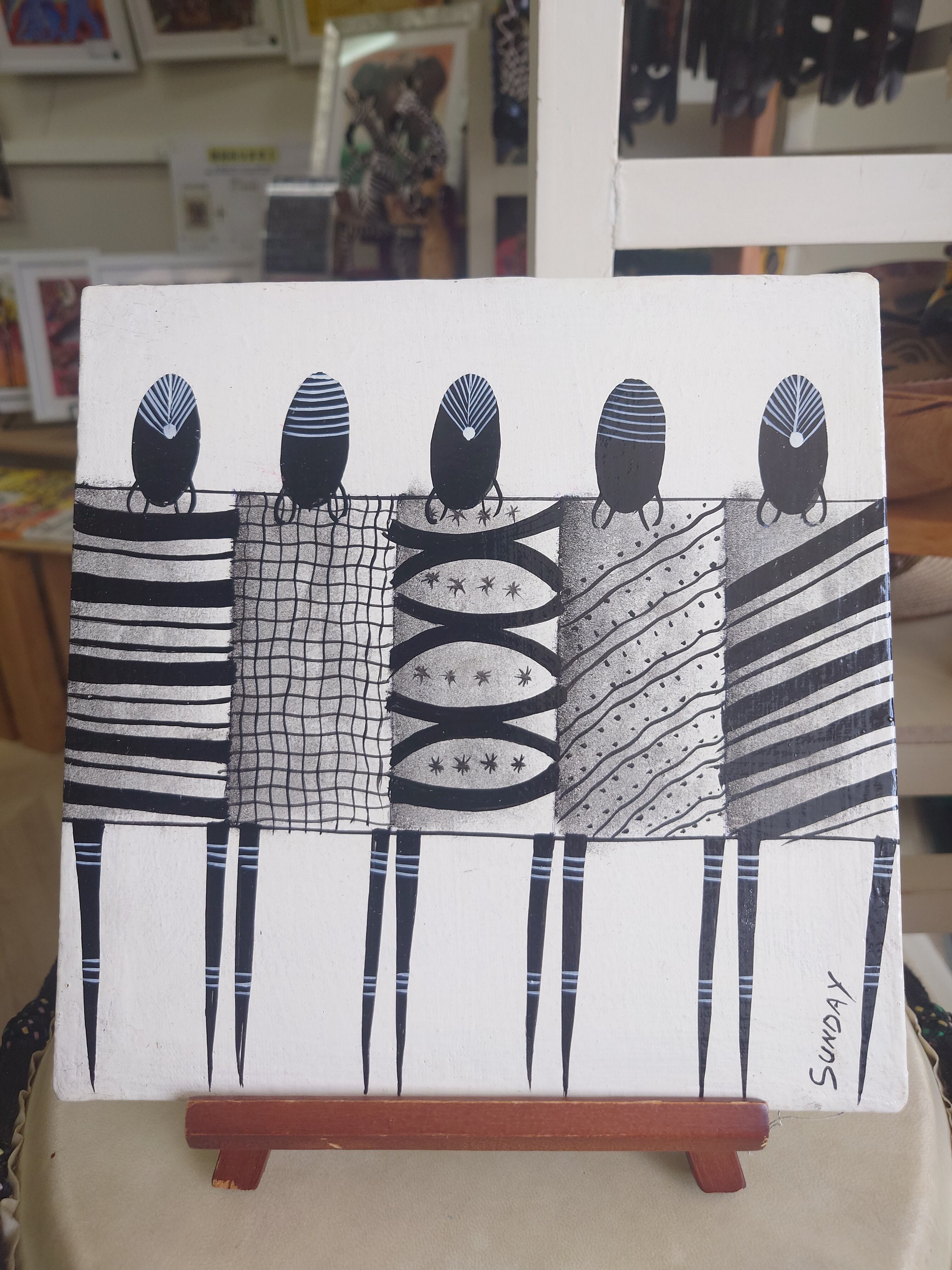 【木版】 SUNDAY 長方形サイズ ティンガティンガは、アフリカの伝統的なティンガティンガスタイルで描かれた作品です。色鮮やかでユニークなデザインが特徴で、カジュアルなインテリアアクセントとして楽しむことができます。手軽に飾れるハガキサイズなので、様々な場所に気軽に置いてお楽しみください!