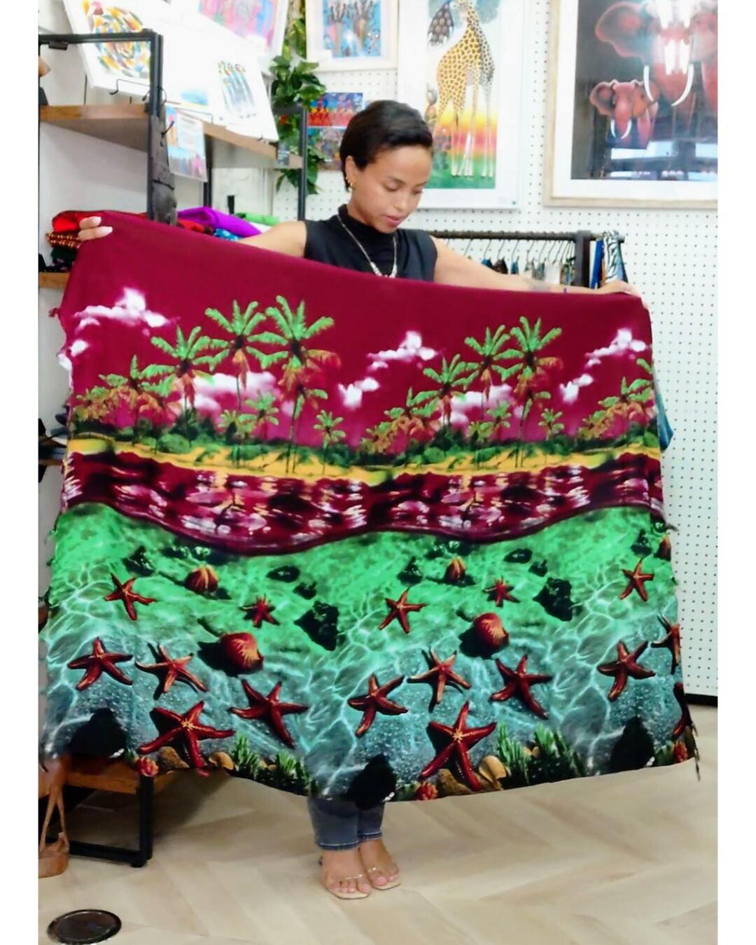 砂浜でのリゾートスタイルから、街中でのカジュアルコーデまで幅広く活躍します。日焼け防止のほかに、肩掛けやヘッドカバーとしても便利です。一枚持っていると、様々なシーンで重宝すること間違いなし!