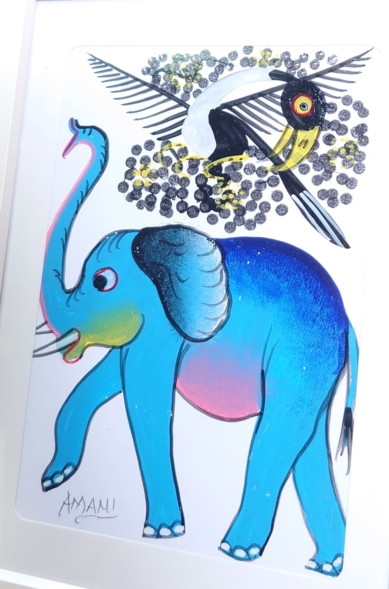 アフリカンポップアートの魅力を手軽に楽しめる、ティンガティンガのはがきサイズのアート作品です。華やかな色使いと大胆なデザインが特徴で、お部屋のアクセントやギフトにも最適です。