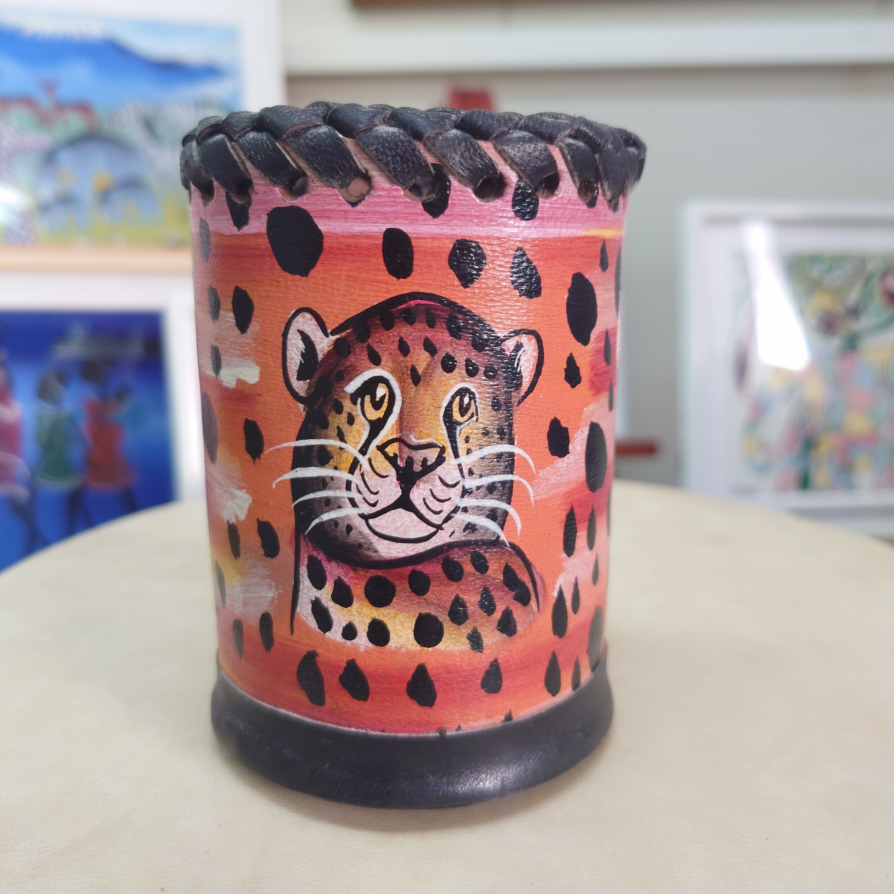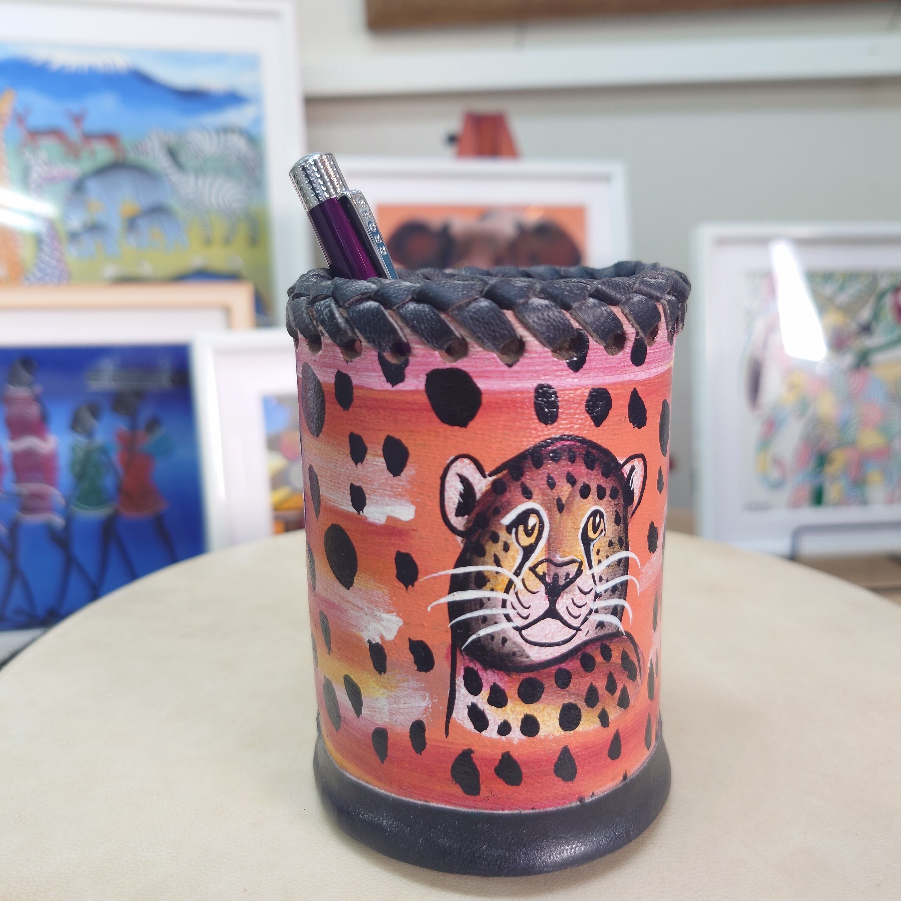 チーター柄が特徴的な、この牛革アニマル柄小物入れは、あなたのライフスタイルにちょっとした遊び心を加えるアイテムです。動物のイラストが手書きで描かれており、個性的かつ高級感あふれる仕上がりとなっています。