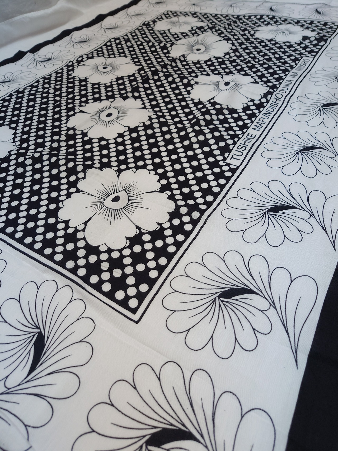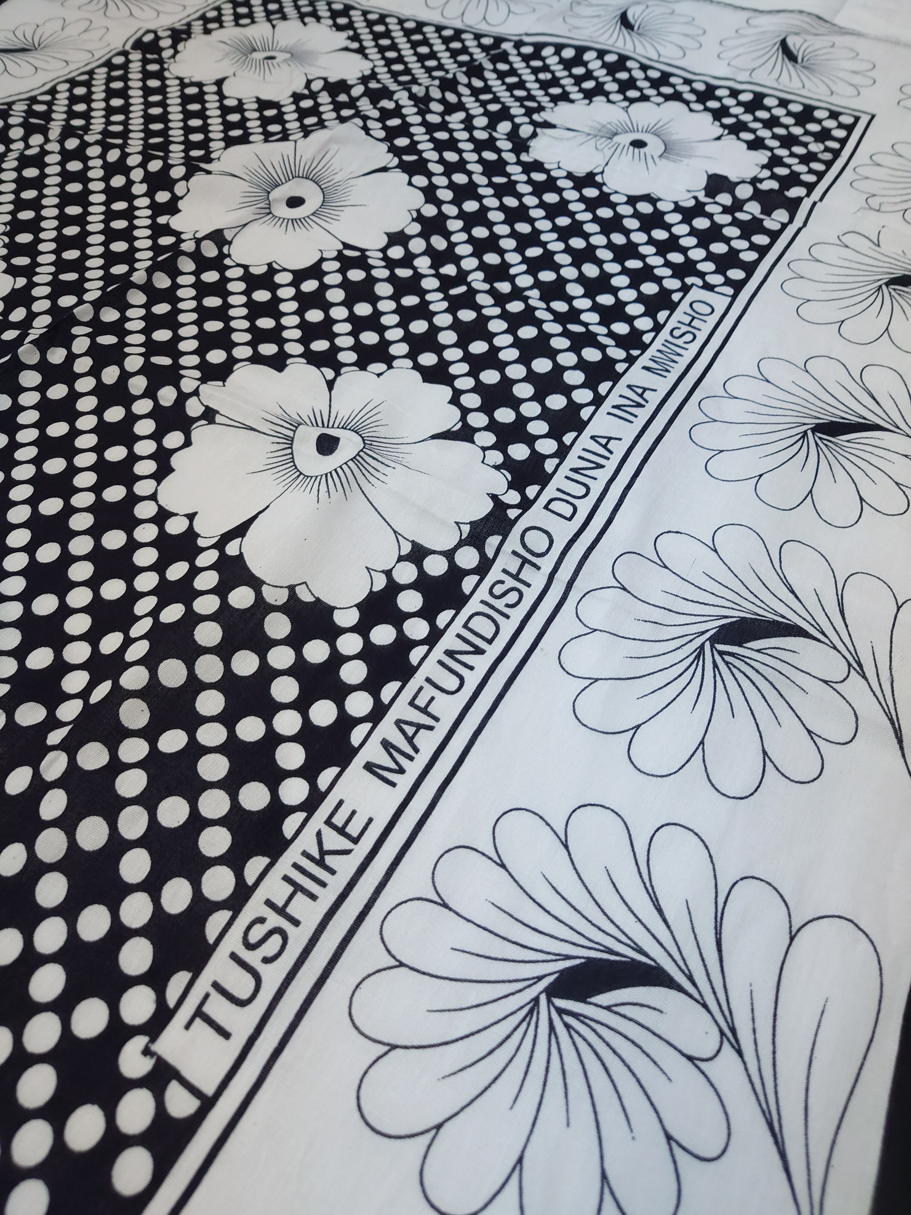 KANGA カンガ Black/White TUSHIKE MAFUNDISHO DUNIA INA MWISHO